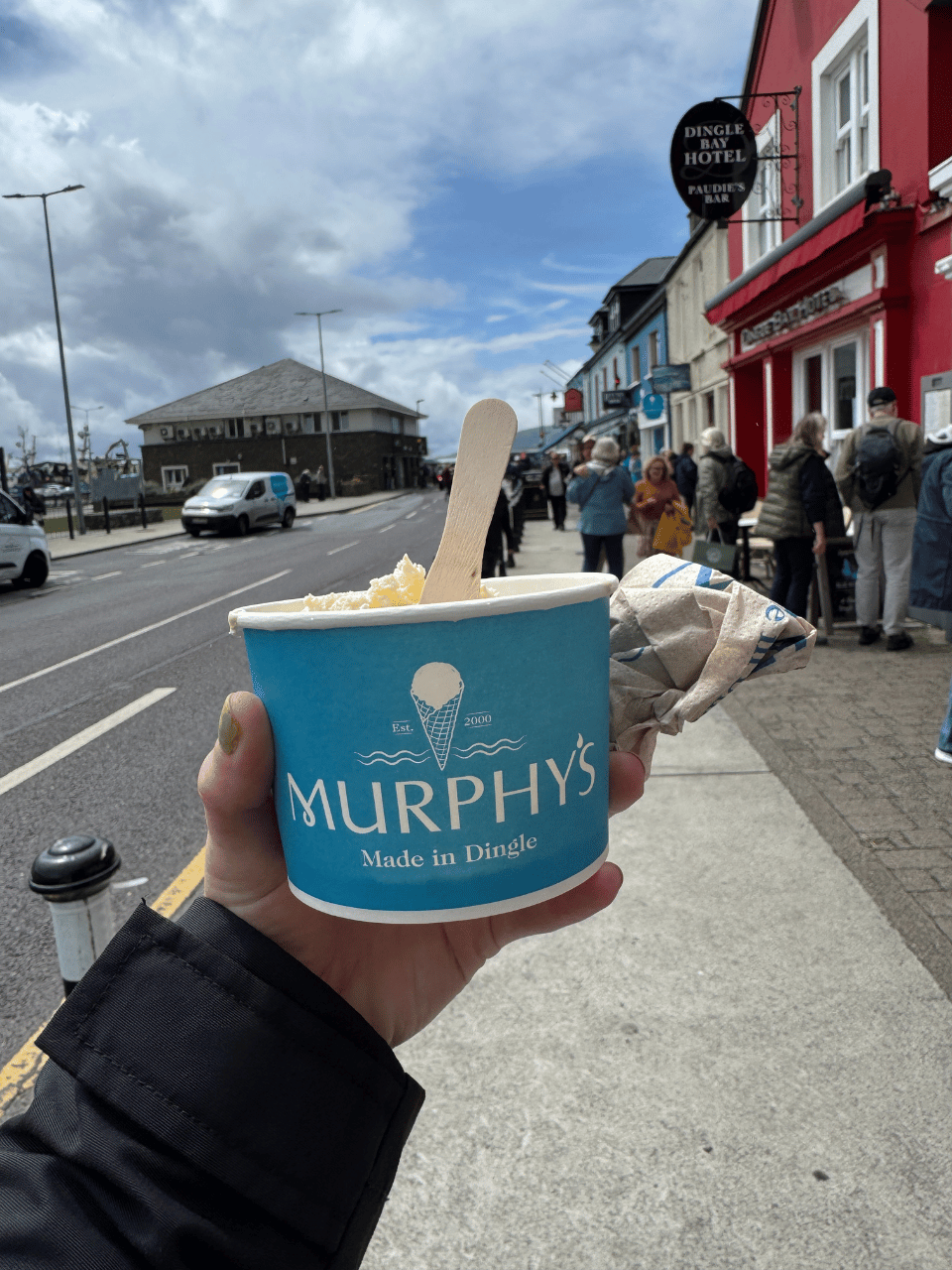 When everyone is walking around Dingle town with an affogato—that’s espresso poured over ice cream—this summer, you have me to thank. There’s a coffee stand just a few shops down from Murphy’s ice cream (there are two Murphy’s ice creams within, like, 800 yards of each other and the coffee stand is in between) so I walked my SEA SALT ice cream to the barista and asked if she could pour espresso over it. To my delight, she was delighted to so.